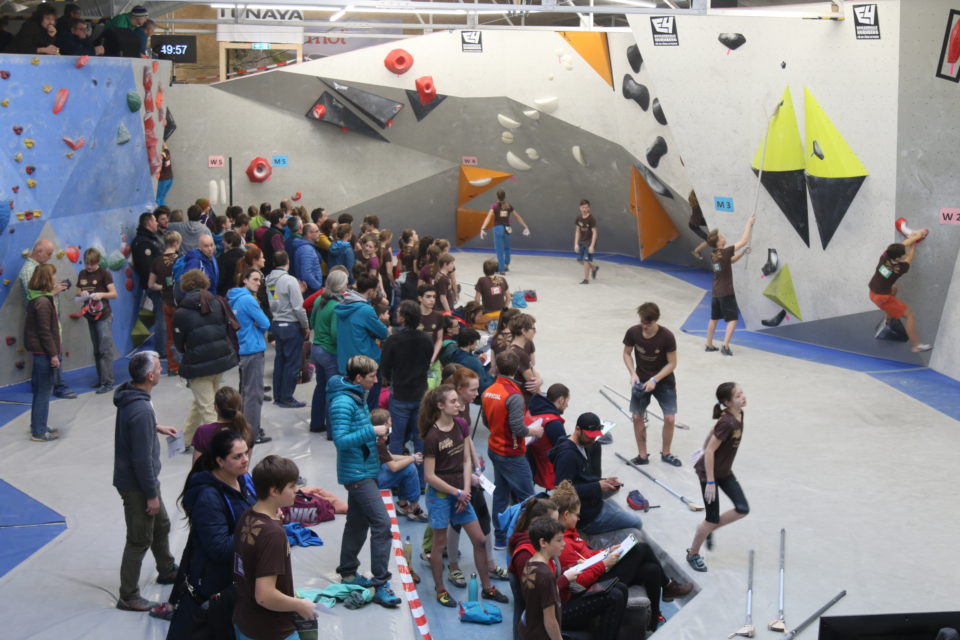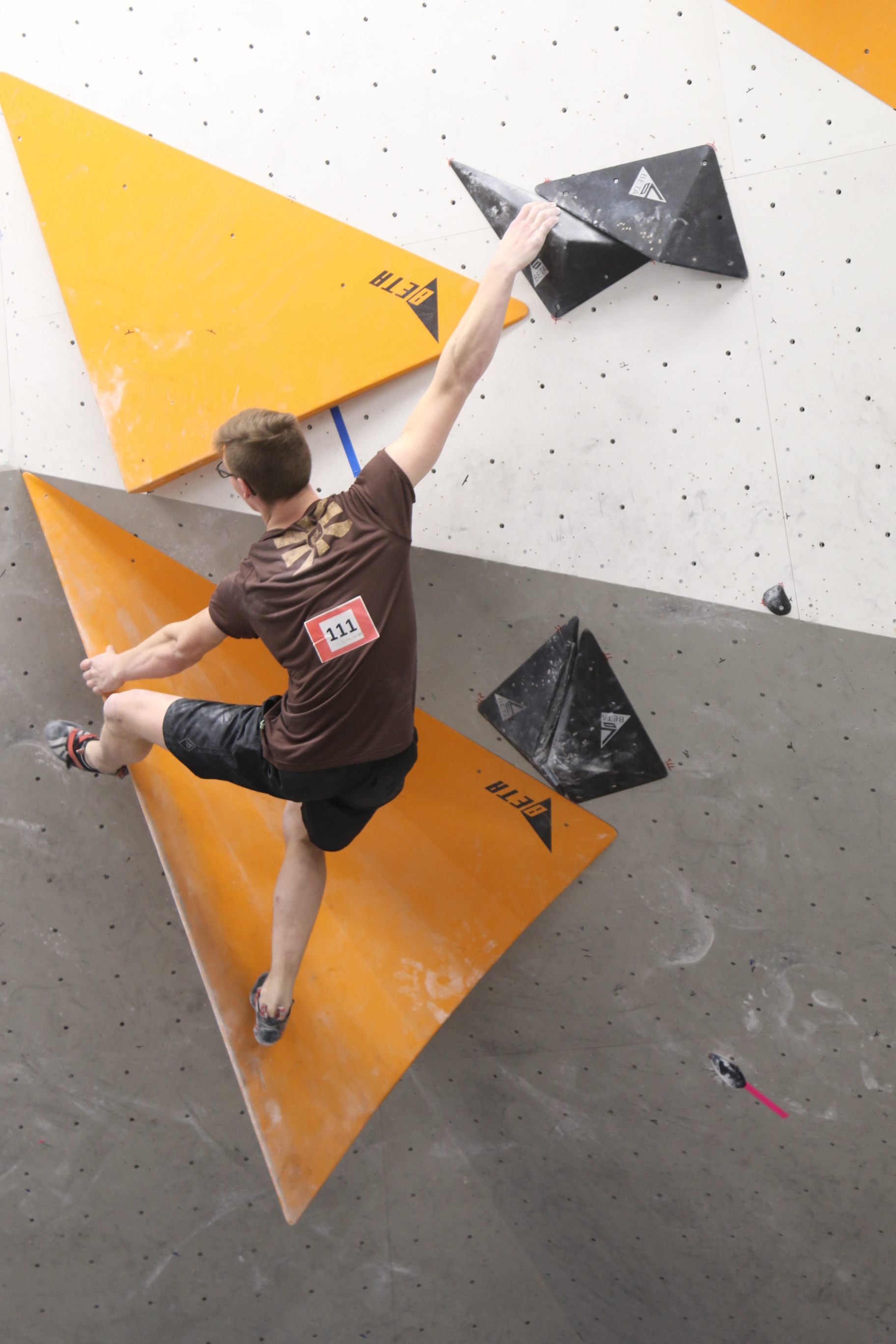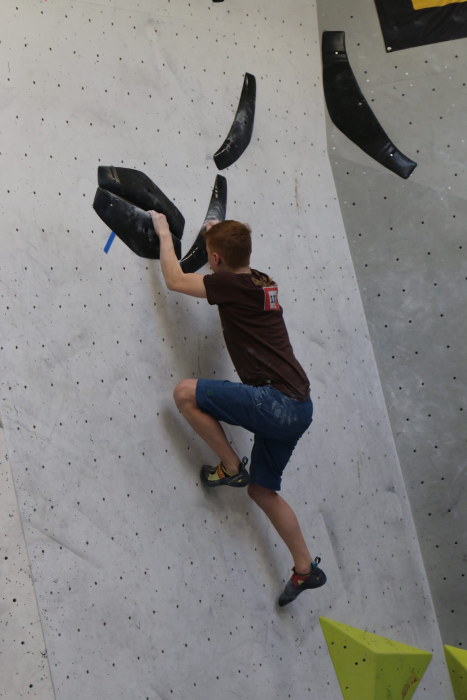 150 Athleten/innen wagten sich in der Qualifikation an die Boulder, die Dirk Uhlig, Lars Bell und Rainer Bauer an unsere Wettkampfwand gezaubert hatten.