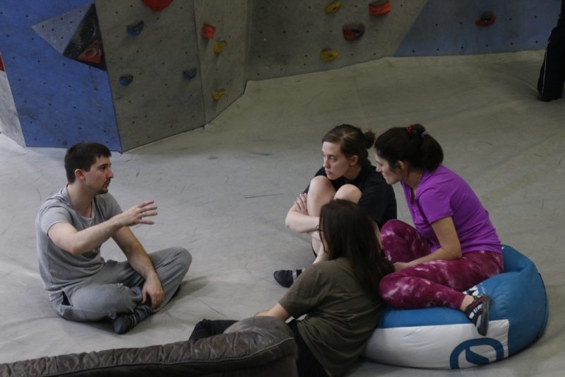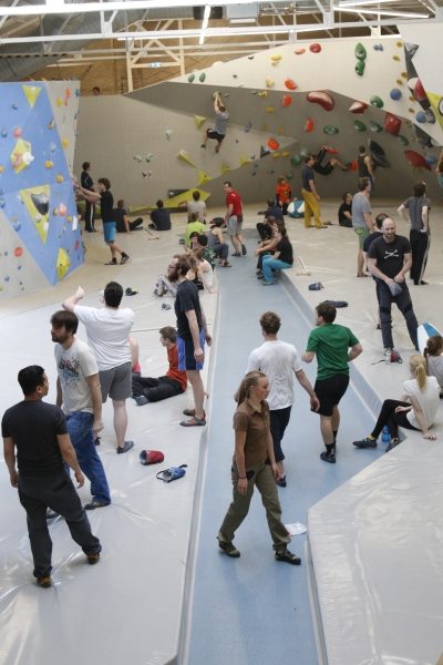 In kleinen Workshoprunden, konnte man bei Helga Münzenberg in Ihr Ausgleichs- und Ergänzungstraining reinschnuppern und sich über therapeutisches Kletterrn informieren.