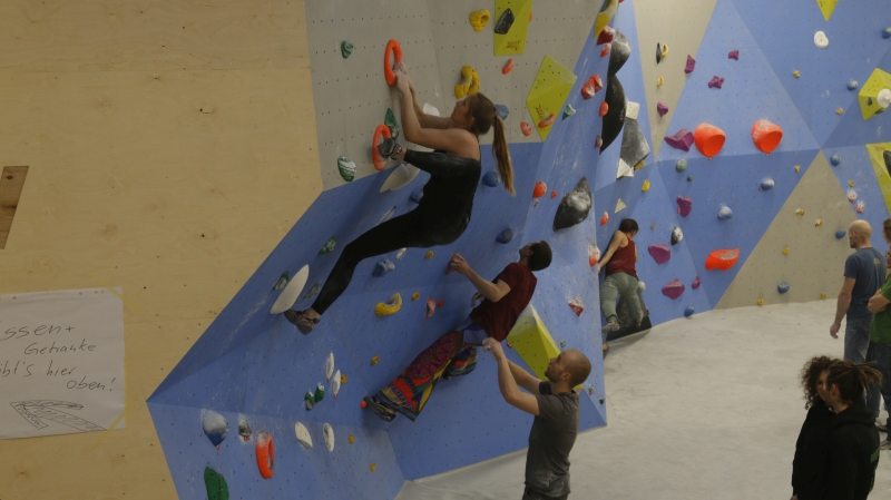 Spotter gab es diesmal nicht nur beim Bouldern, sondern auch bei den Jamsessions mit Sabine Winkler für Flyer und Base, beim AcroYoga.