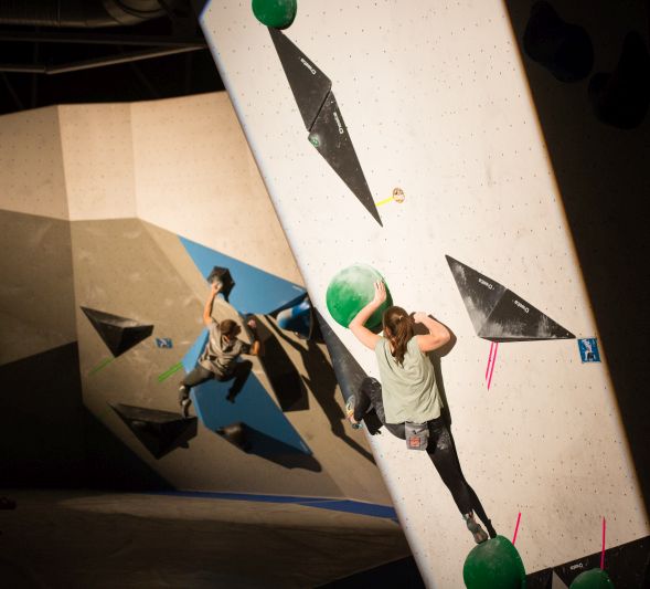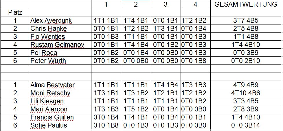 Das deutsche Boulderteam, vertreten durch Alexander Averdunk, Chris Hanke, Florian Wientjes, Peter Würth, Sofie Paulus, Lilli Kiesgen, Alma Bestvater und Monika Retschy sowie internationmalen Stars wie Pol Roca (Spanien), Rustam Gelmanov (Russland), Mari Alarcón und Francis Guillen (beide Spanien), lieferten sich einen spannenden Wettkampf vor vollem Haus.