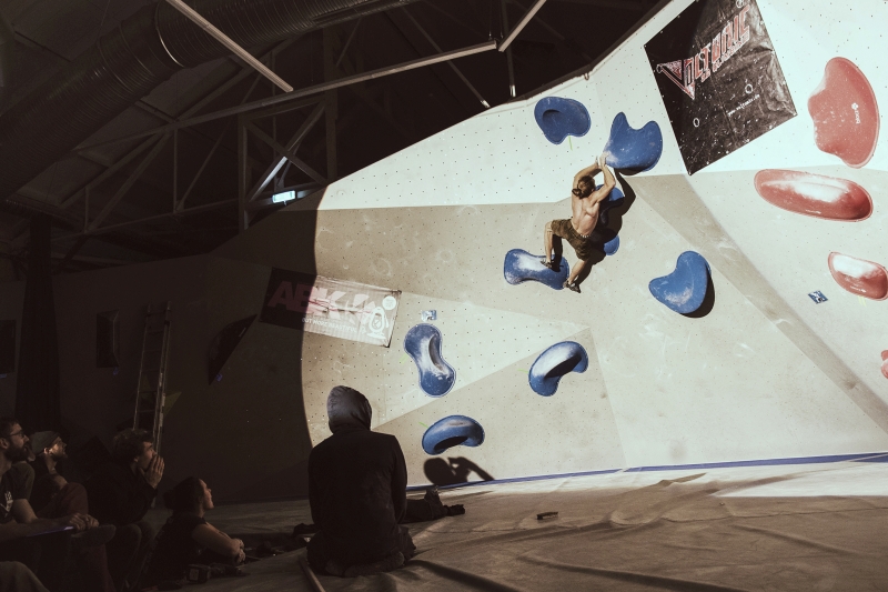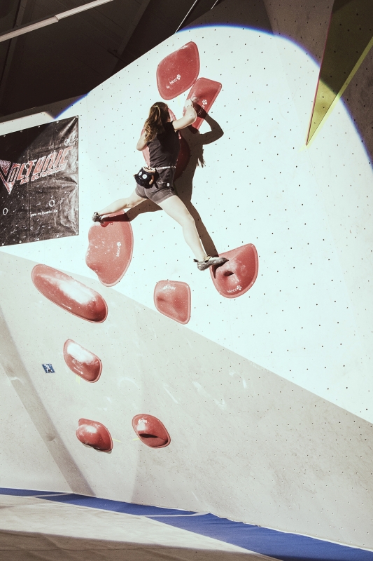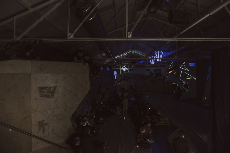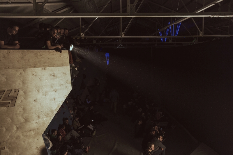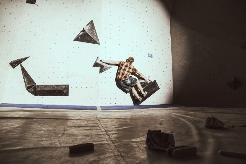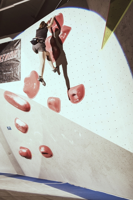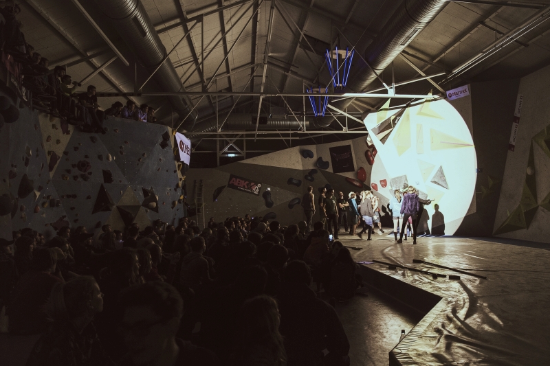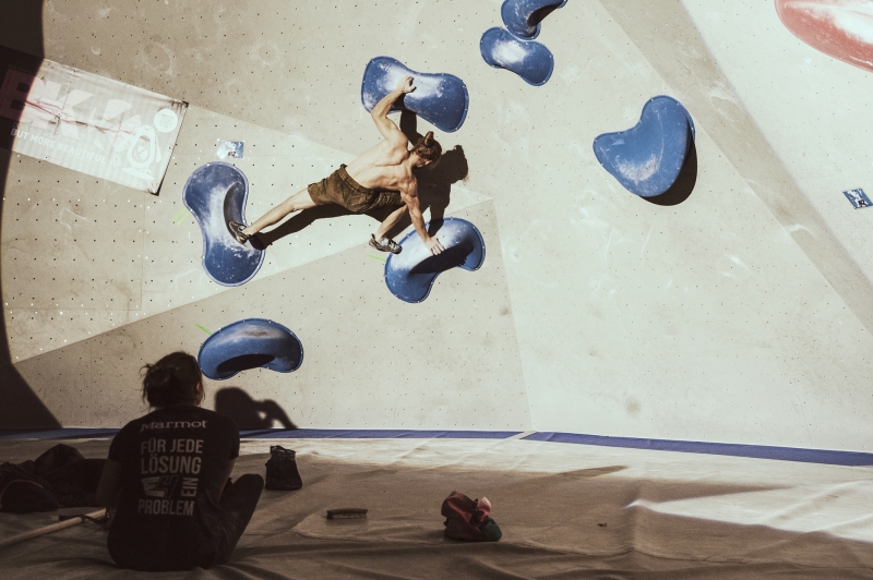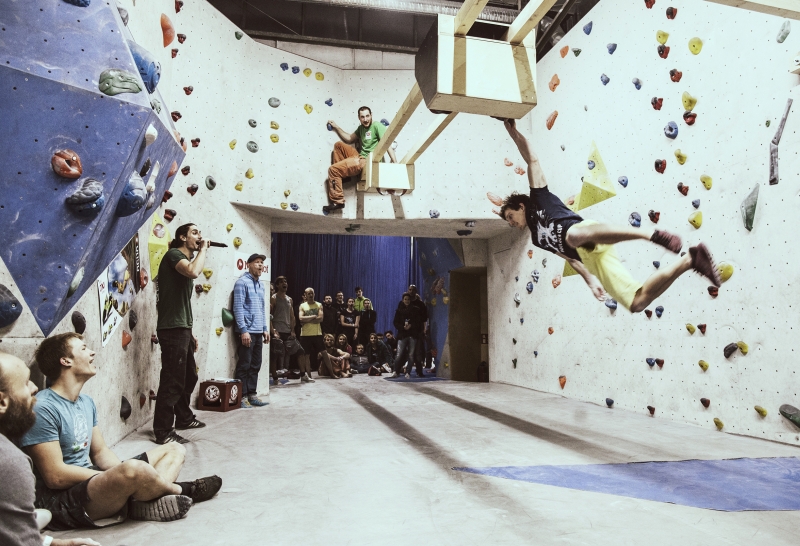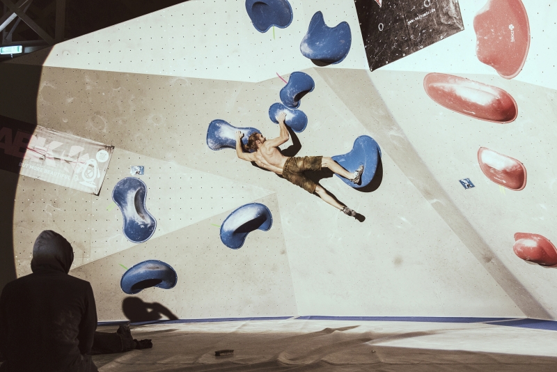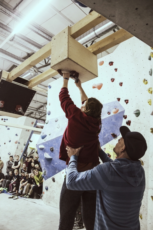 Doch bevor sich die Finalteilnehmer einen großartigen Schlagabtausch lieferten, galt es sich im Weitsprung Contest zu messen. Diese Konstruktion kam erstmalig beim Frankenjura Festival zum Einsatz, bei der Alex Megos damals eine Weite von 3,20Meter bezwang. Gestartet wurde bei einer Weite von 1,60m. Das sich scheinbar wahre Spezialisten dieser Randsportart im Teilnehmerfeld befanden, zeigt die Siegerweite von 3,40 Meter, welche unter frenetischen Anfeuerungen des Publikums erreicht wurde.