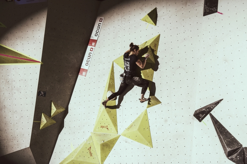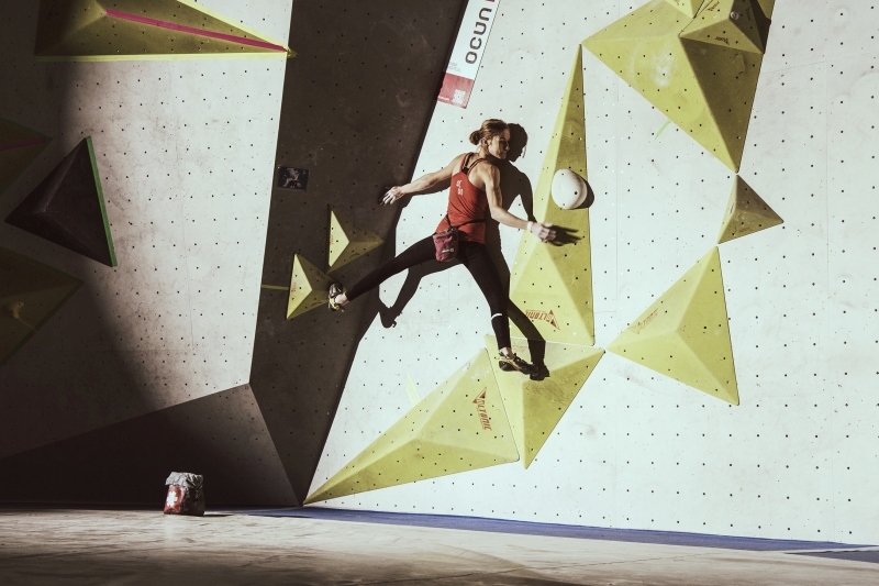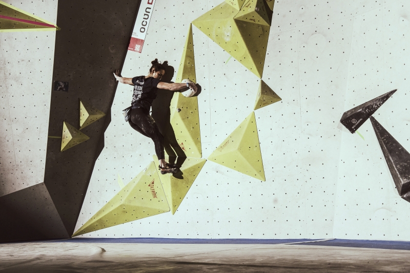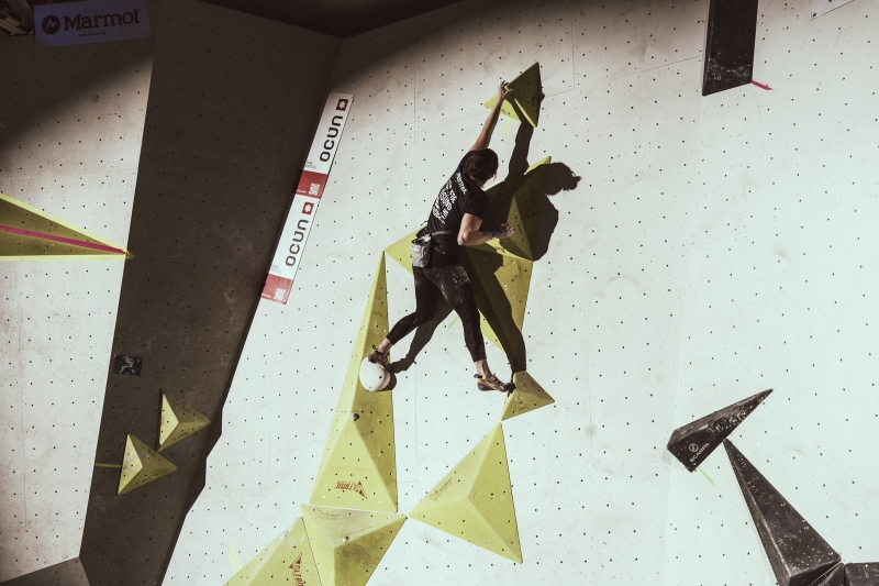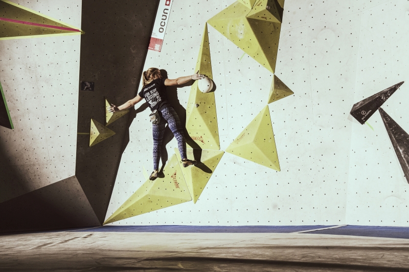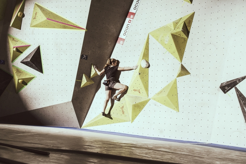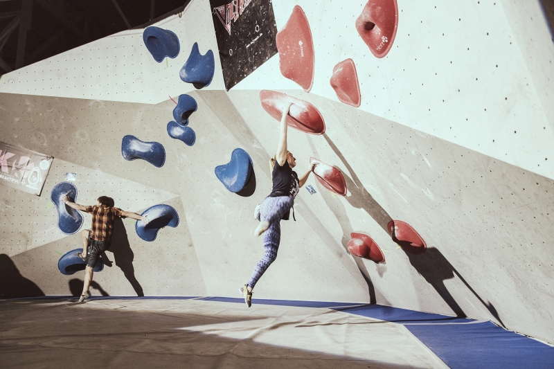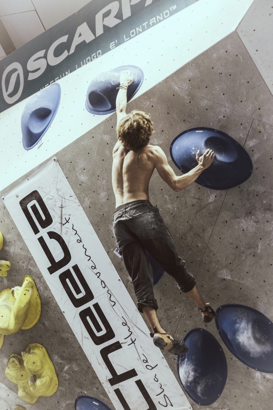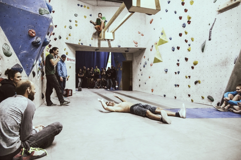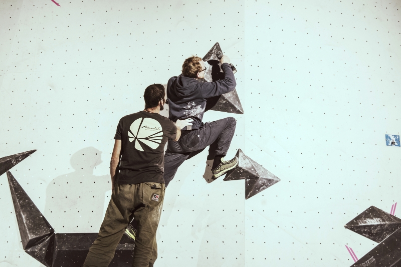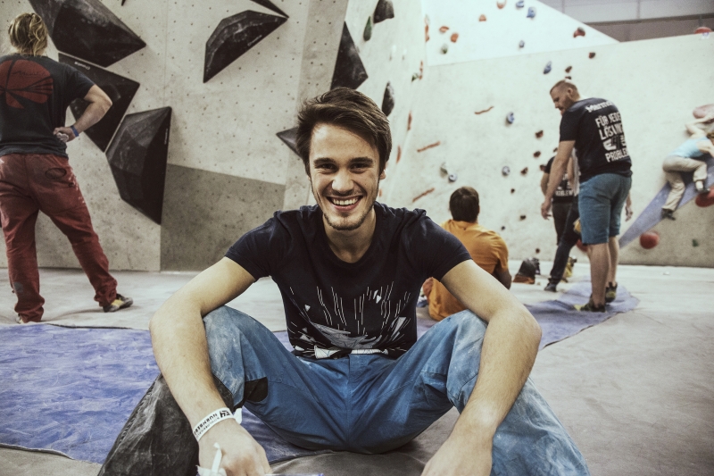 Doch bevor sich die Finalteilnehmer einen großartigen Schlagabtausch lieferten, galt es sich im Weitsprung Contest zu messen. Diese Konstruktion kam erstmalig beim Frankenjura Festival zum Einsatz, bei der Alex Megos damals eine Weite von 3,20Meter bezwang. Gestartet wurde bei einer Weite von 1,60m. Das sich scheinbar wahre Spezialisten dieser Randsportart im Teilnehmerfeld befanden, zeigt die Siegerweite von 3,40 Meter, welche unter frenetischen Anfeuerungen des Publikums erreicht wurde.
