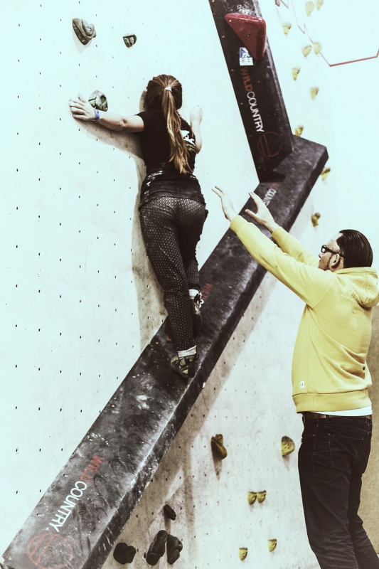 Das nicht nur reine Finger bzw. Oberarmkraft im E4 gefragt ist, gefällt bekannter Maßen nicht jedem. Das aber Bouldern und Klettern auch weit mehr sein kann, als Minileisten weg zu bolzen, zeigten die unterschiedlichen Probleme.