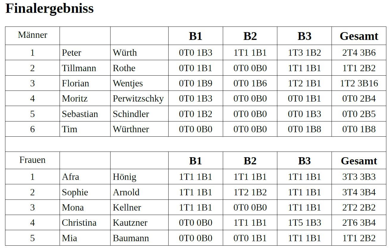 Nach 5 Stunden standen die Teilnehmer des Damen und Herren Finales, sowie die Gewinner der Altersklassen ü. 40 weiblich & männlich sowie Jugend weiblich & männlich fest.