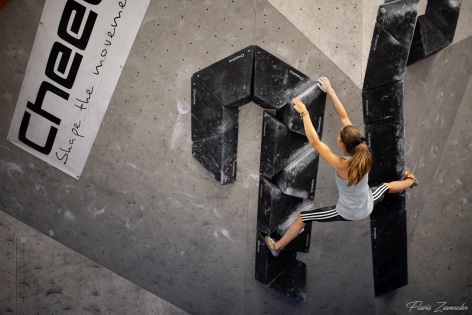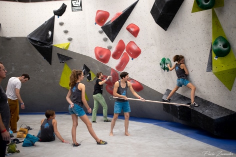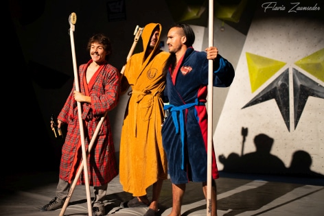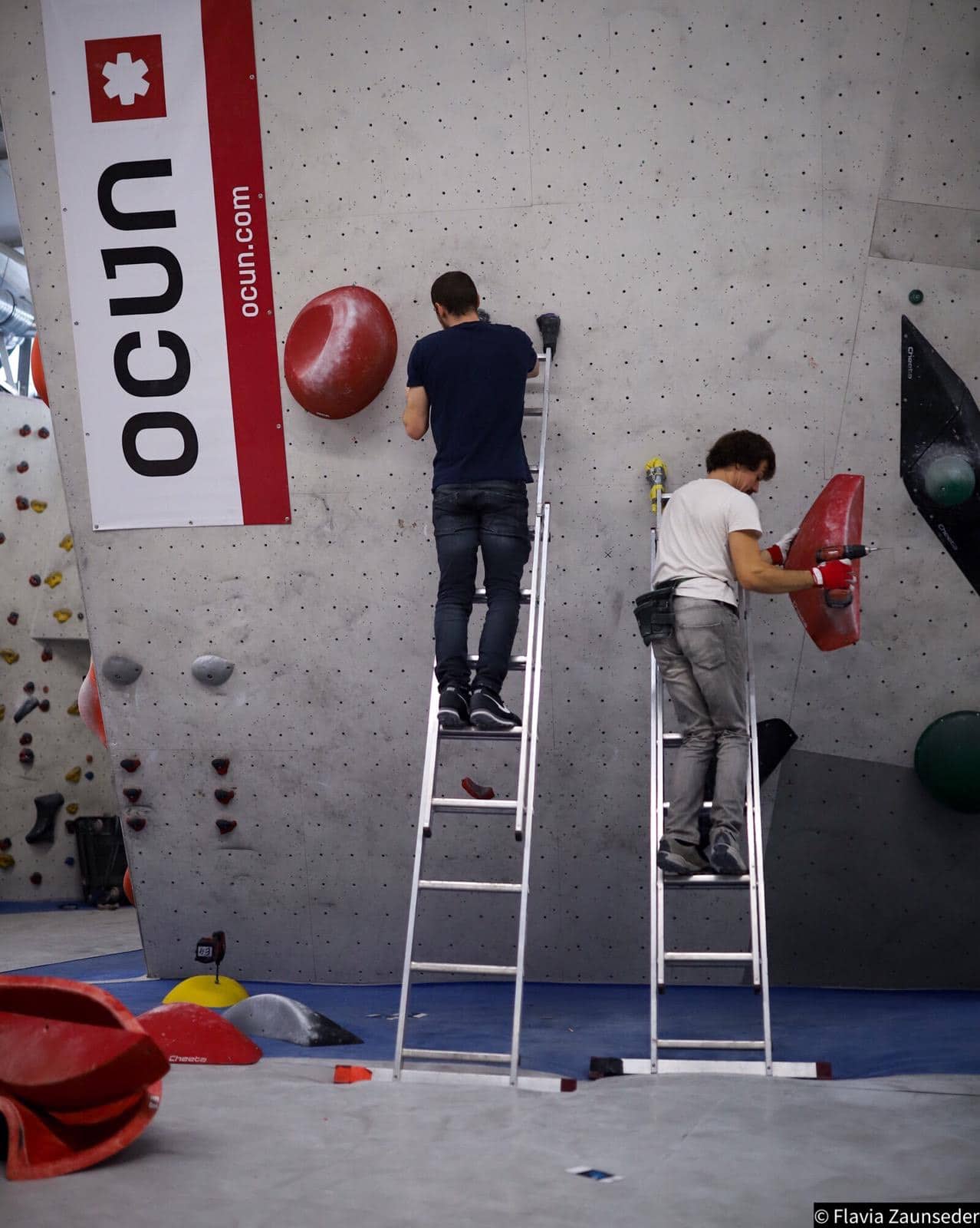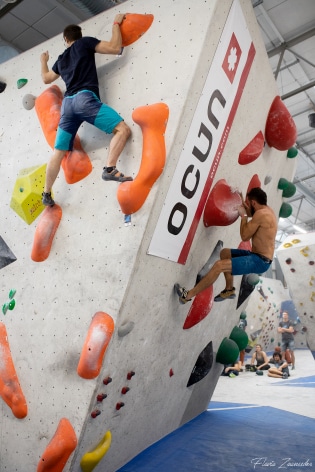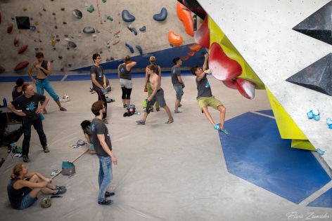 Das E4 Routenbauteam unter der Anleitung von Dirk Uhlig und Rainer Bauer haben unter dem diesjährigen Motto "DYNO HEINO“ dynamische und koordinative Boulder in allen Schwierigkeitsgraden an die Wände gezaubert. Mit Unterstützung aus Leipzig von Martin Ramirez sorgten sie für die spektakulären Finalboulder.