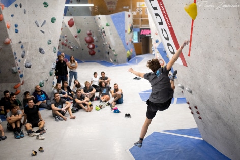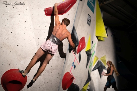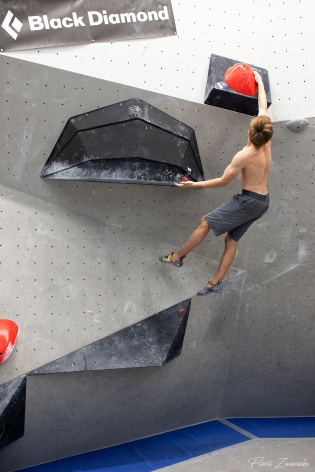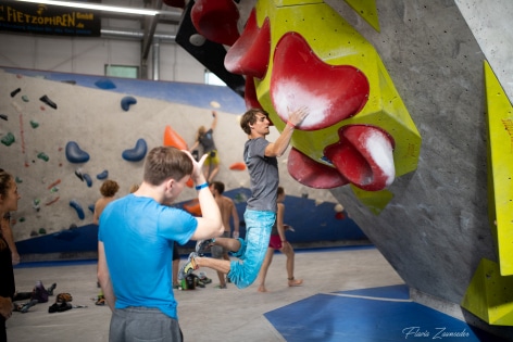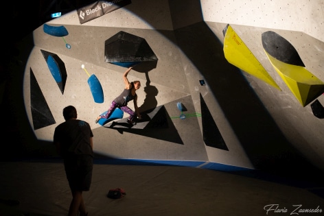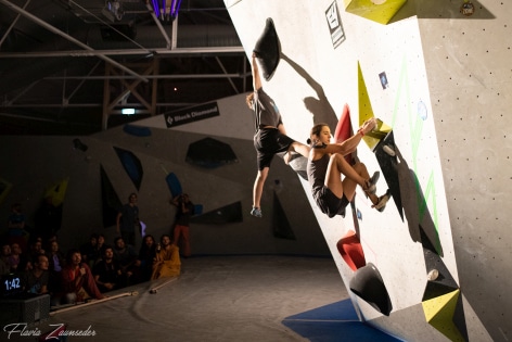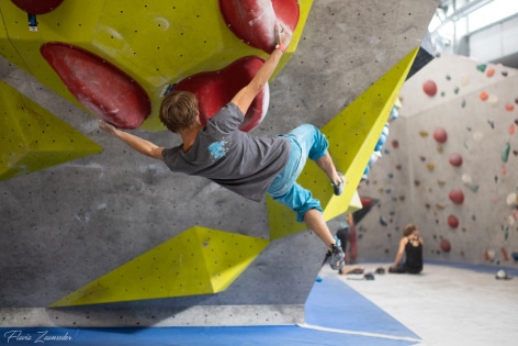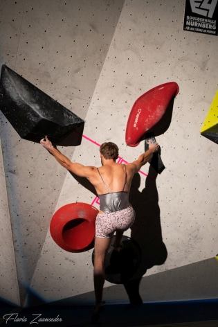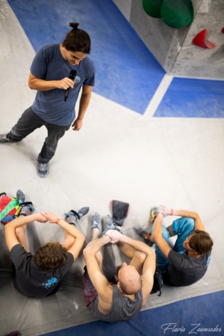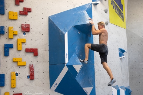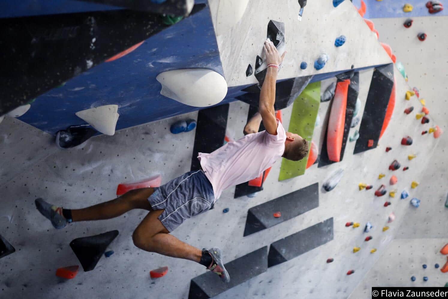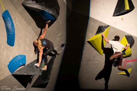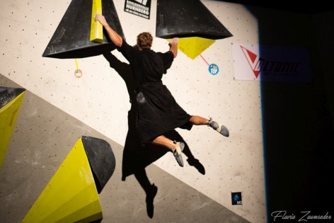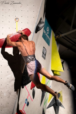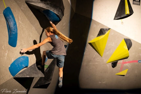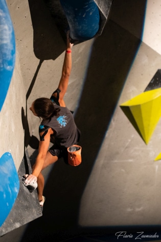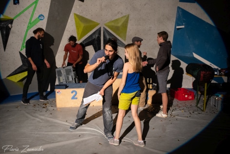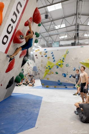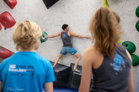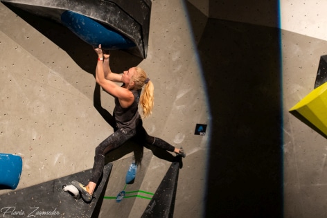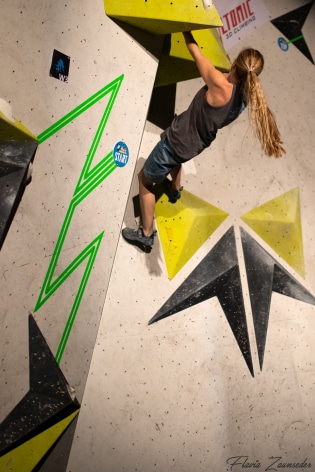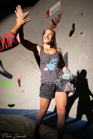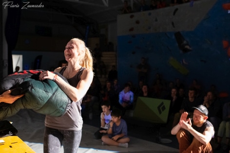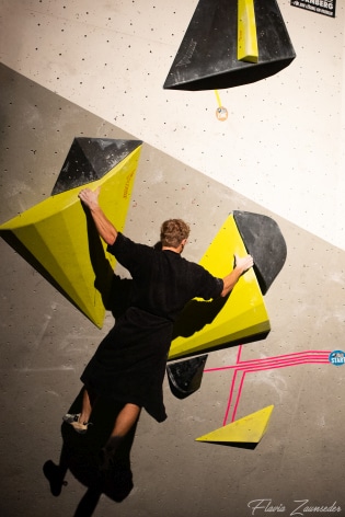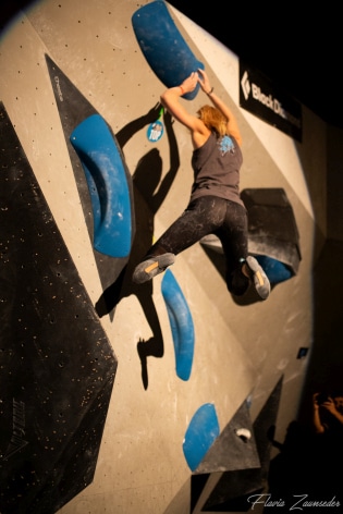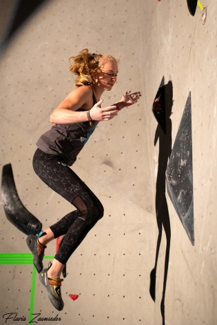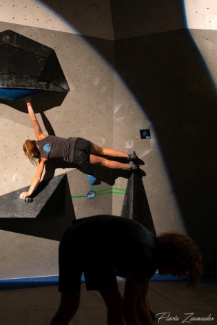 Das Finale war wie immer der Höhepunkt des Tages. Die fünf besten Frauen und Männer traten an der Wettkampfwand gegeneinander an. Die Halle war bis auf den letzten Platz gefüllt und die Zuschauer sorgten für eine geile Atmosphäre. Im Finale galt es nochmal alles zu geben. Die ersten Boulder erforderten Koordination und Fußtechnik sowohl bei den Frauen als auch bei den Männern. Im zweiten Boulder hieß es dann: Schultern anspannen. Und im letzten Boulder war nochmal volle Konzentration und volles Commitment gefragt, dynamische Züge bis zum Top haben allen Athleten nochmal alles abverlangt.