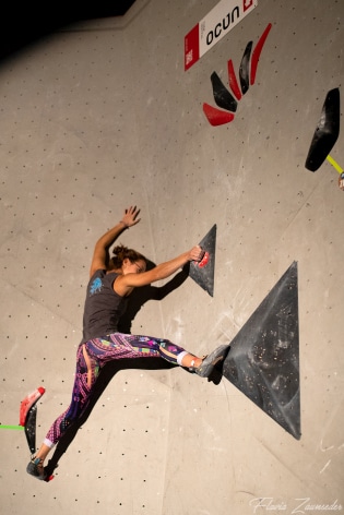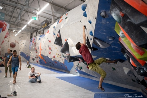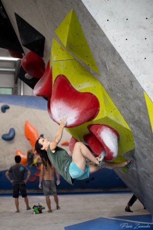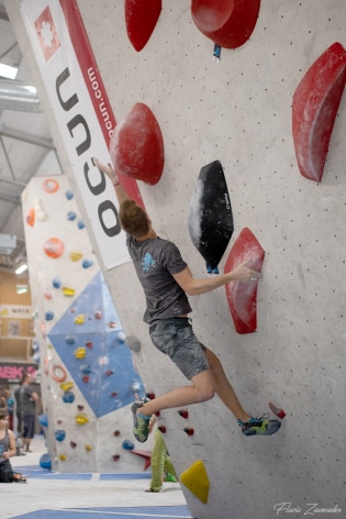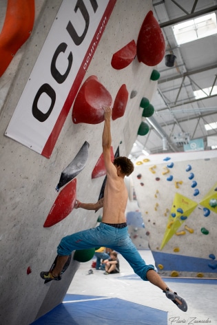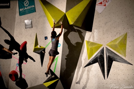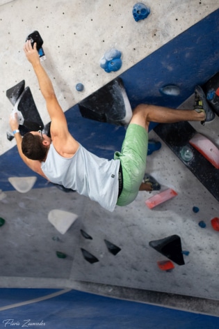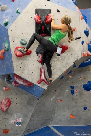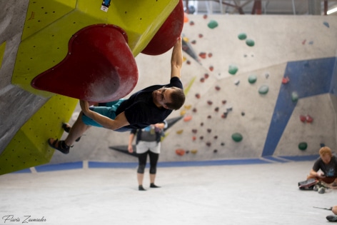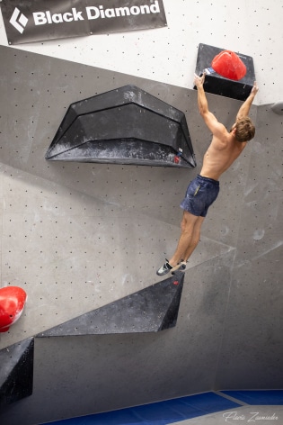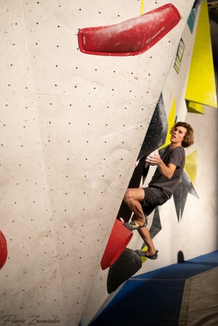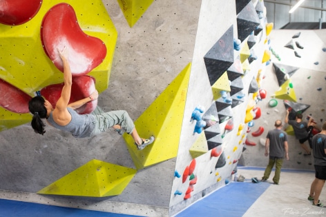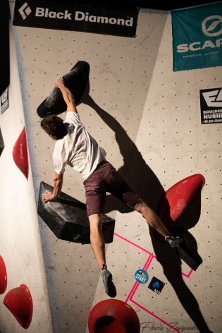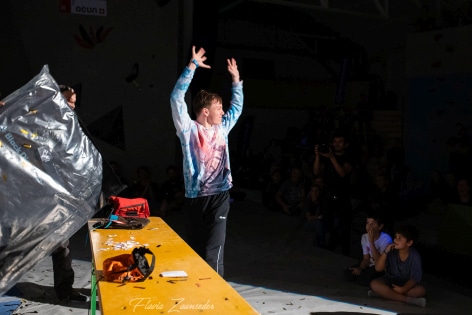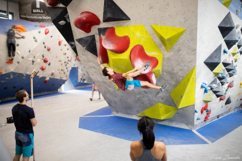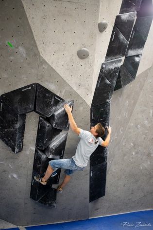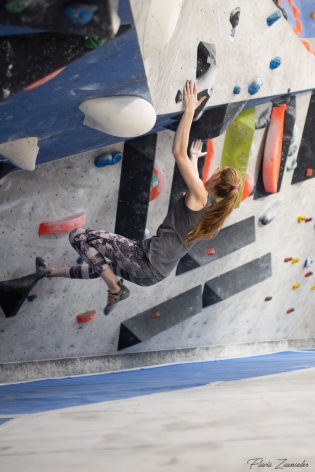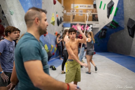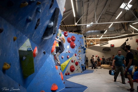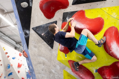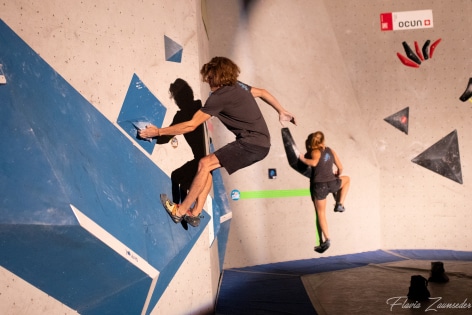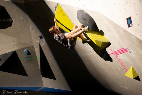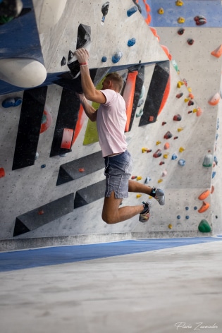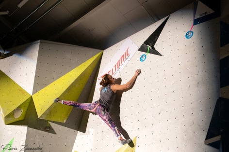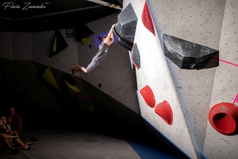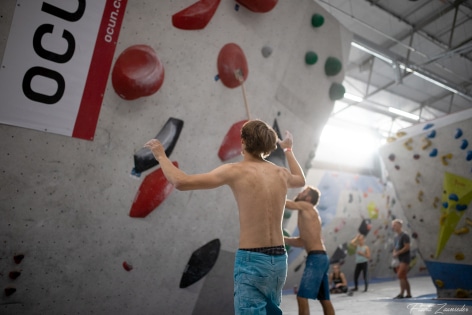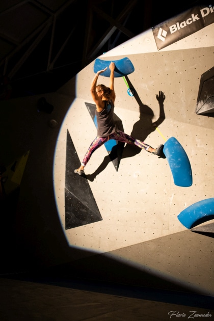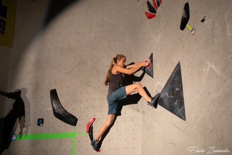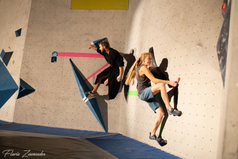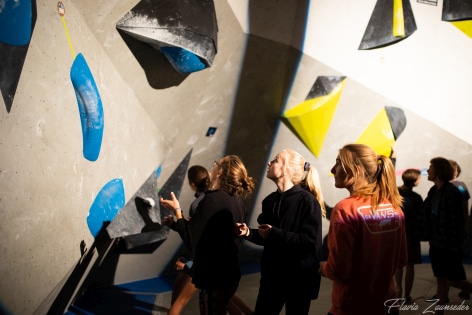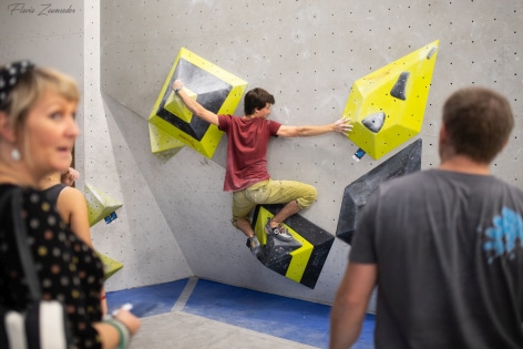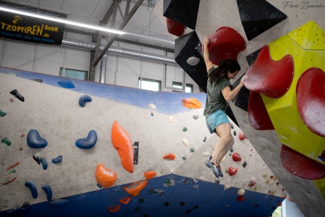 Das Finale war wie immer der Höhepunkt des Tages. Die fünf besten Frauen und Männer traten an der Wettkampfwand gegeneinander an. Die Halle war bis auf den letzten Platz gefüllt und die Zuschauer sorgten für eine geile Atmosphäre. Im Finale galt es nochmal alles zu geben. Die ersten Boulder erforderten Koordination und Fußtechnik sowohl bei den Frauen als auch bei den Männern. Im zweiten Boulder hieß es dann: Schultern anspannen. Und im letzten Boulder war nochmal volle Konzentration und volles Commitment gefragt, dynamische Züge bis zum Top haben allen Athleten nochmal alles abverlangt.