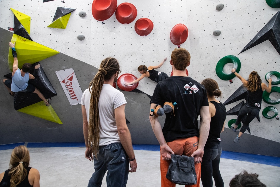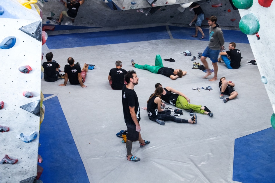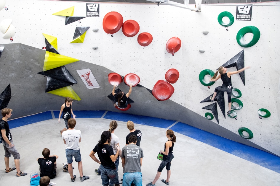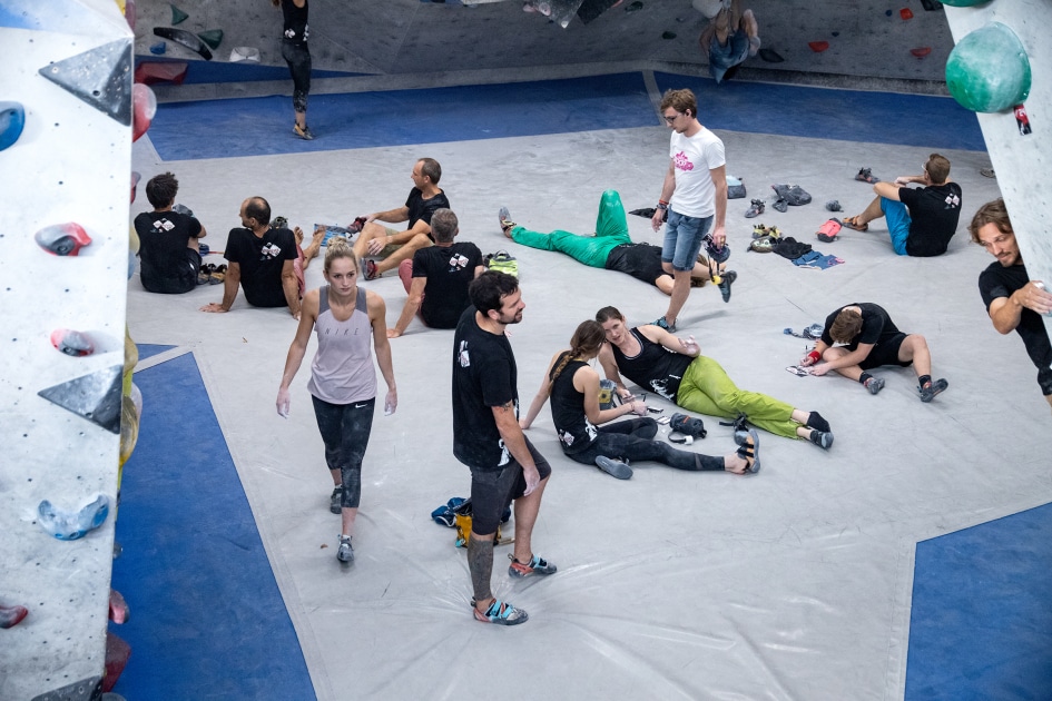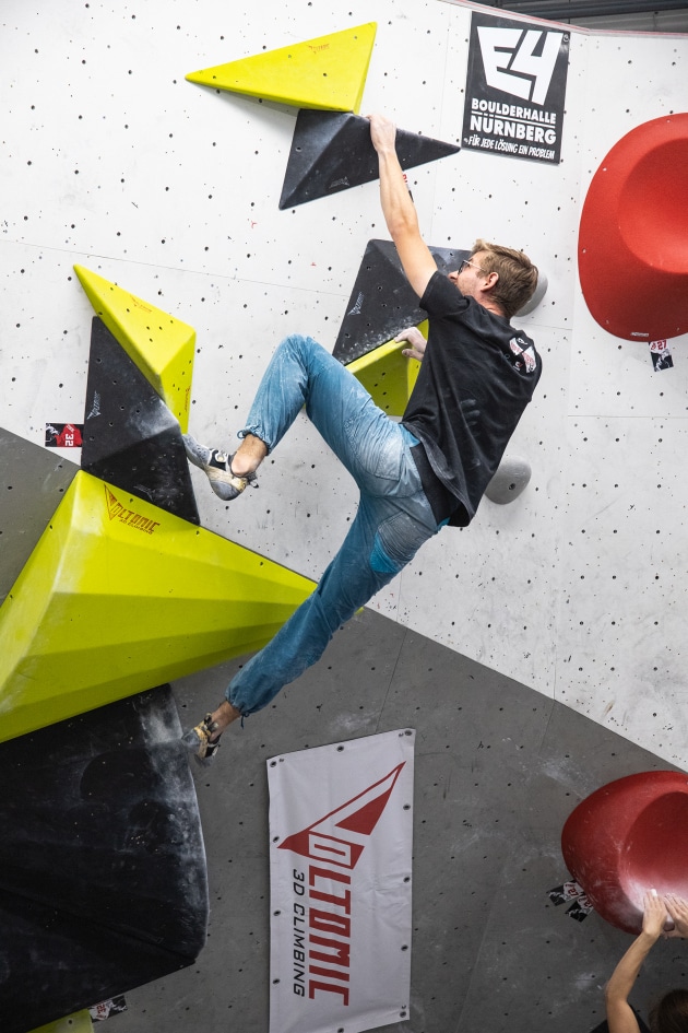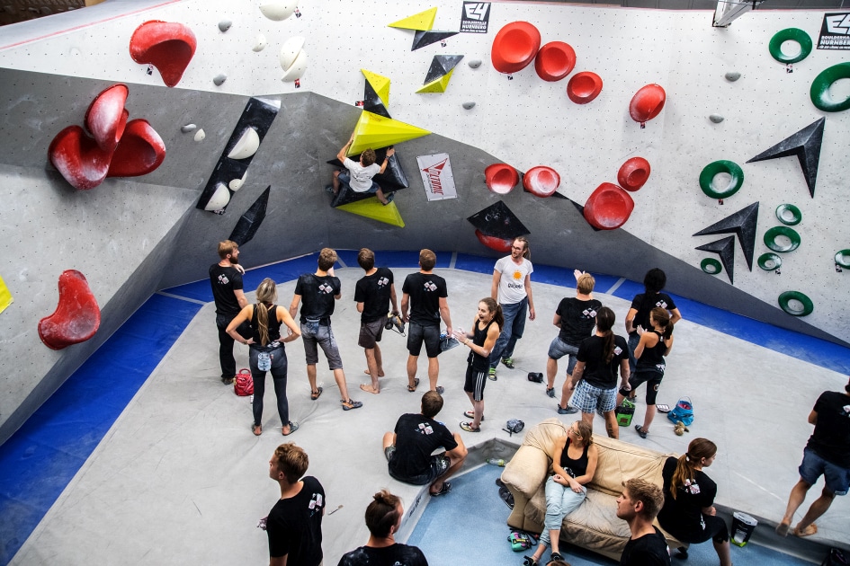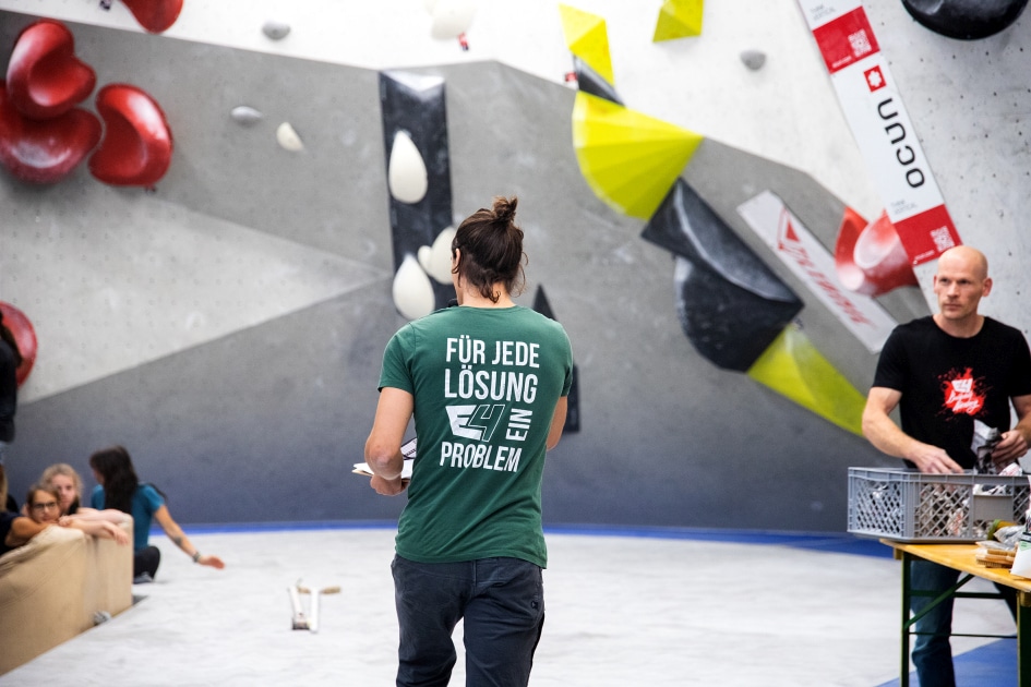 Das E4-Routenbauteam, unter „Schrauberführung“ von Rainer Bauer, hat mit kreativer und tatkräftiger Unterstützung der Boulderwelt-Crew (Dave und Stefan) für die 35 außergewöhnlichen Boulder gesorgt. Dabei waren nicht nur die schweren Boulder spannend geschraubt, sondern vor allem im Mittelfeld konnte man seine Fähigkeiten an neuen Griffsets in genialen Bouldern testen.