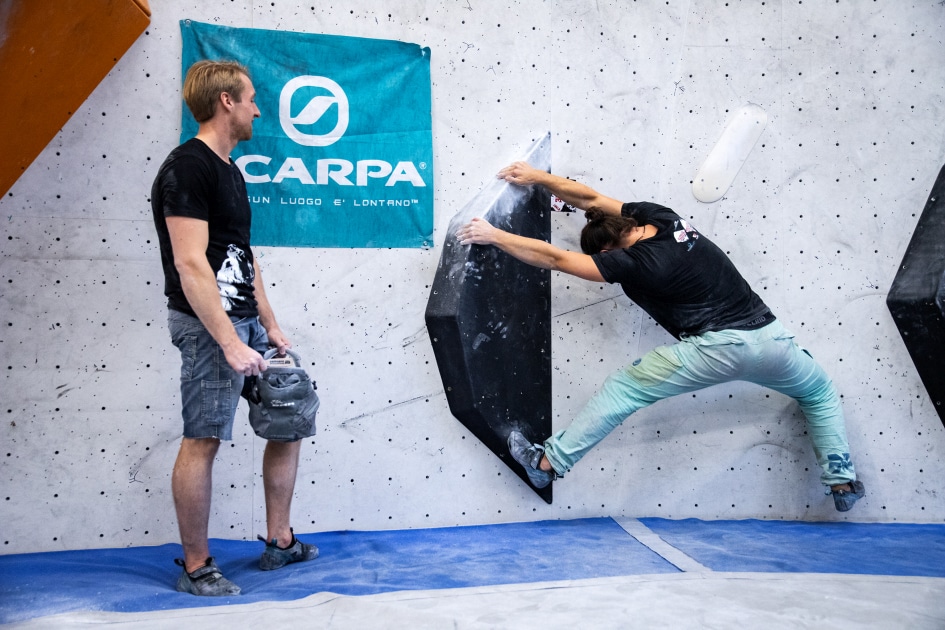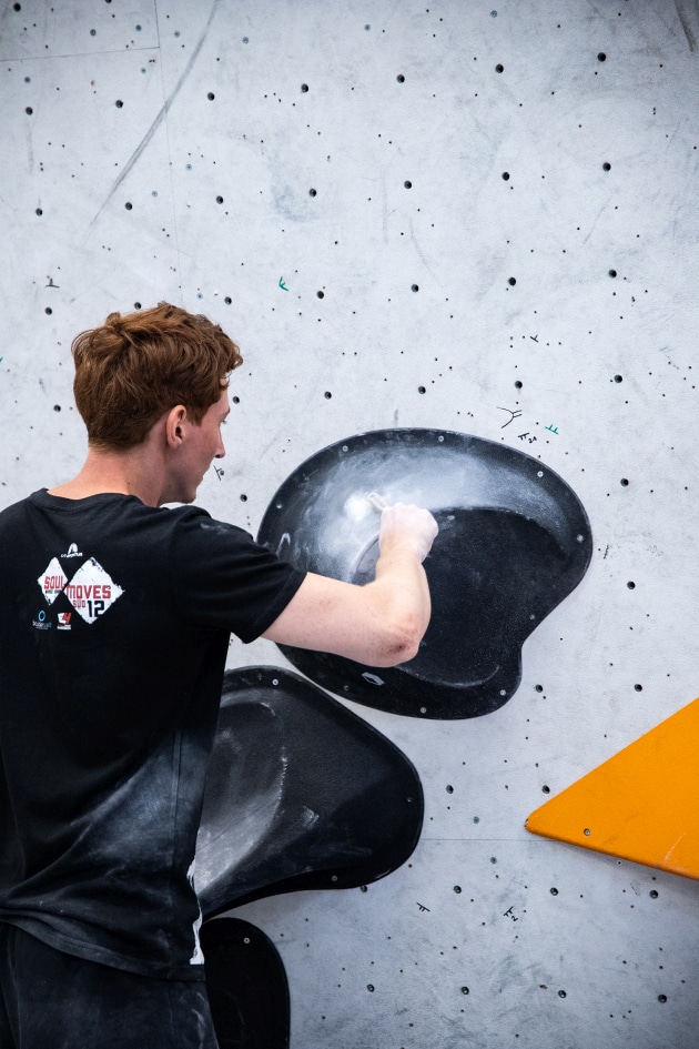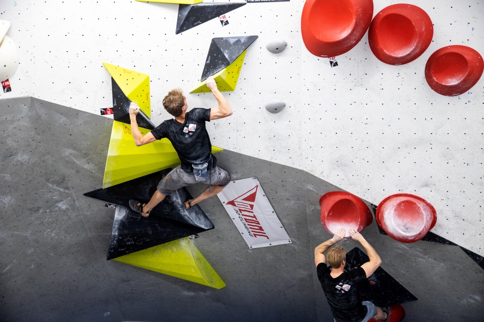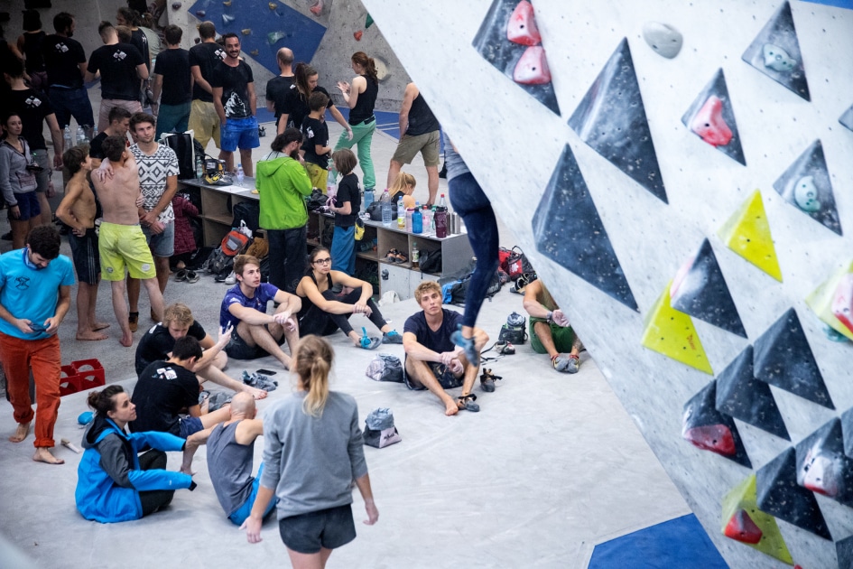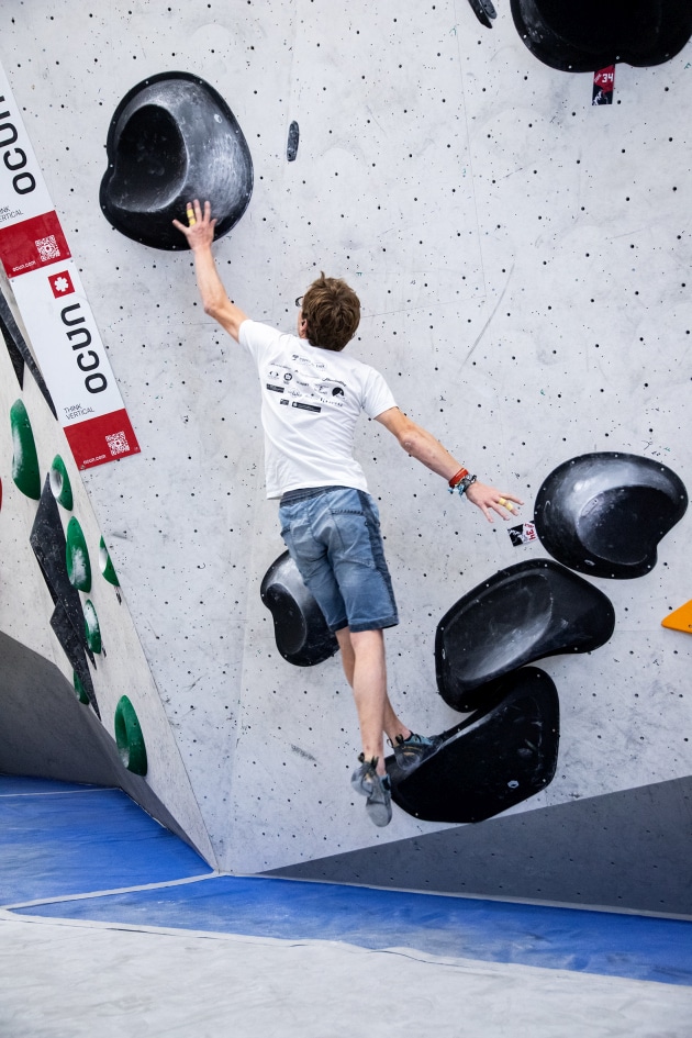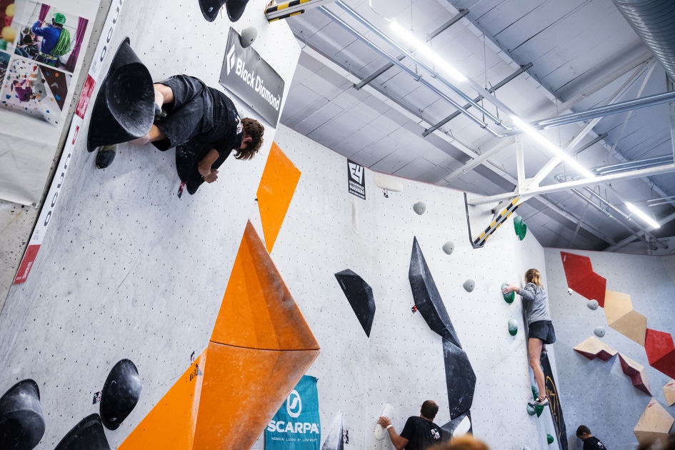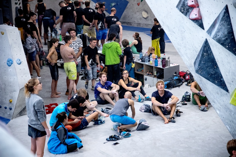 Das E4-Routenbauteam, unter „Schrauberführung“ von Rainer Bauer, hat mit kreativer und tatkräftiger Unterstützung der Boulderwelt-Crew (Dave und Stefan) für die 35 außergewöhnlichen Boulder gesorgt. Dabei waren nicht nur die schweren Boulder spannend geschraubt, sondern vor allem im Mittelfeld konnte man seine Fähigkeiten an neuen Griffsets in genialen Bouldern testen.