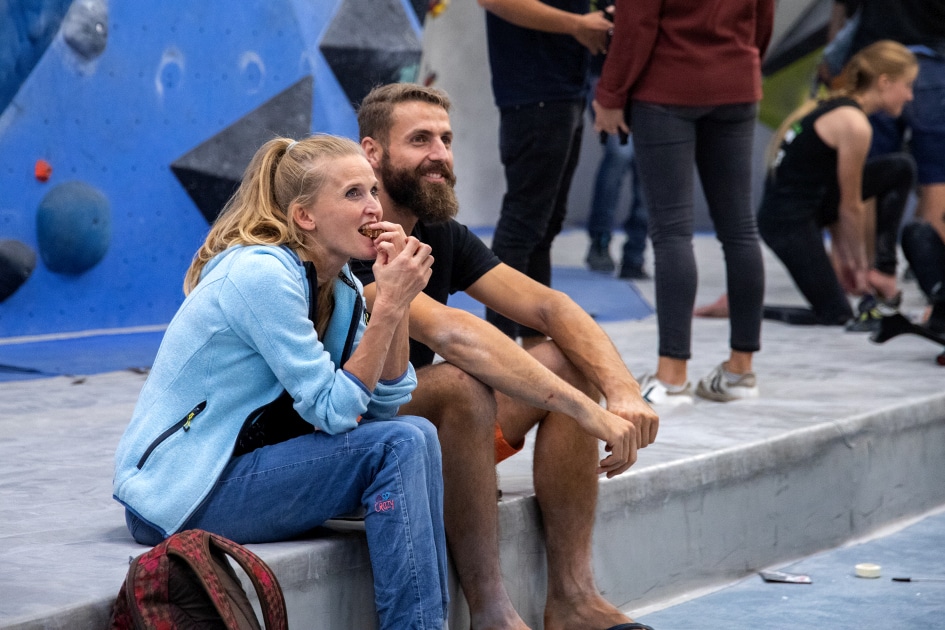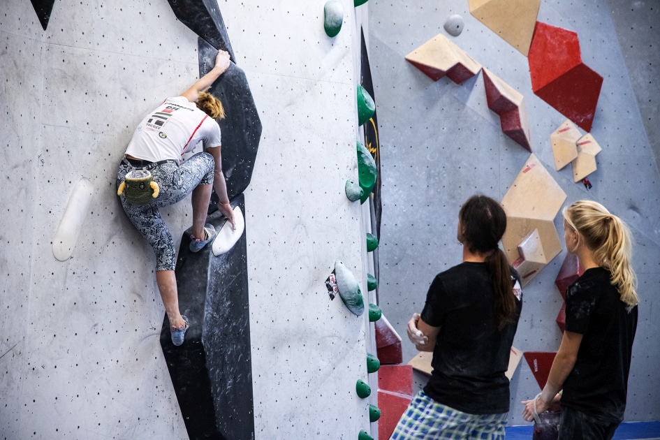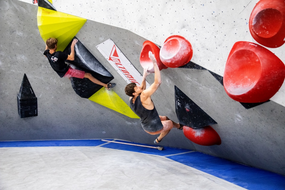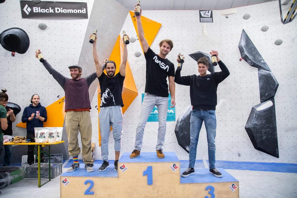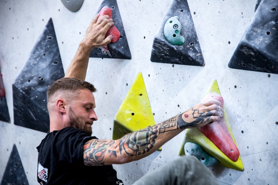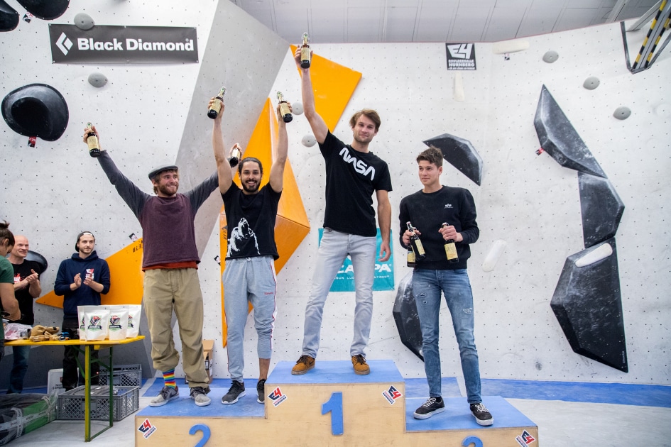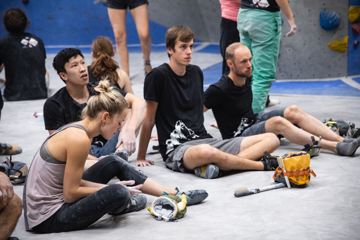 Das E4-Routenbauteam, unter „Schrauberführung“ von Rainer Bauer, hat mit kreativer und tatkräftiger Unterstützung der Boulderwelt-Crew (Dave und Stefan) für die 35 außergewöhnlichen Boulder gesorgt. Dabei waren nicht nur die schweren Boulder spannend geschraubt, sondern vor allem im Mittelfeld konnte man seine Fähigkeiten an neuen Griffsets in genialen Bouldern testen.